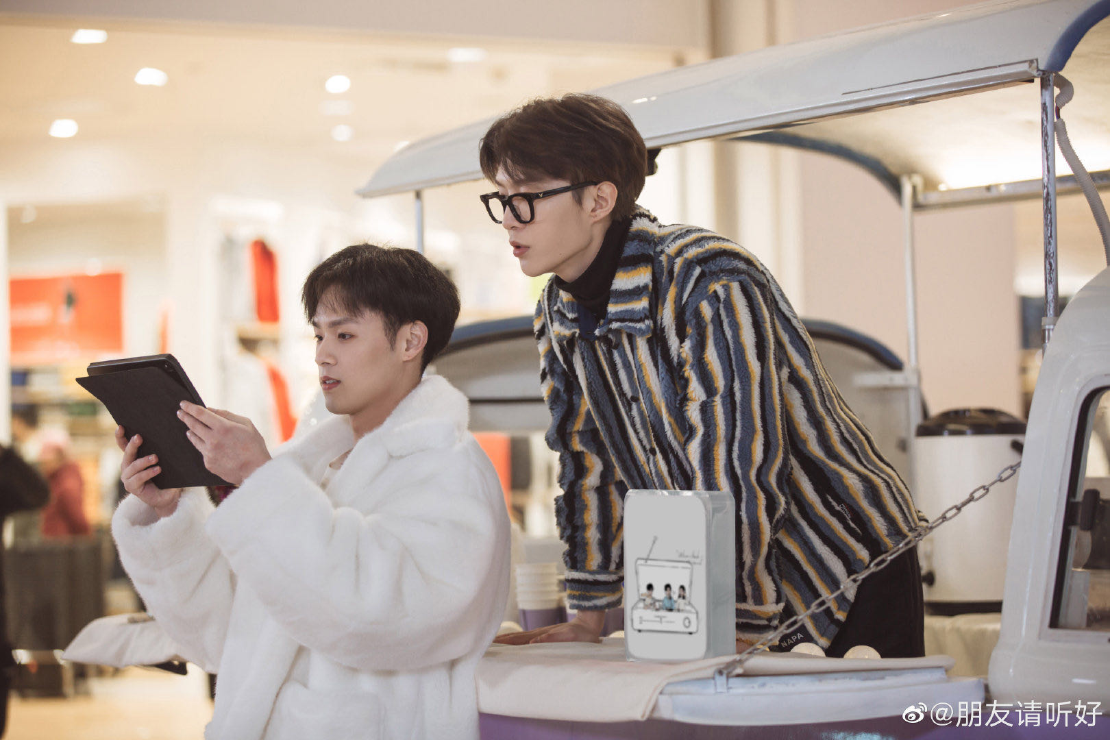 在《朋友请听好》里,常驻嘉宾何炅、谢娜和易烊千玺被定义为住在同一屋檐下的“老友”。他们要定期接待做客的新朋友(助播),并完成接听来电、收取信件、写朋友的话、与听众交流等任务。何炅与谢娜之间天然的老友关系使得节目的立意成为可能。同时,何炅作为一名从广播电台起步的主持人,本身就具备与节目的高适配性。他擅长让所有人感到亲切与愉快的性格,给广播小站带来了宽容、周全、善意的氛围。