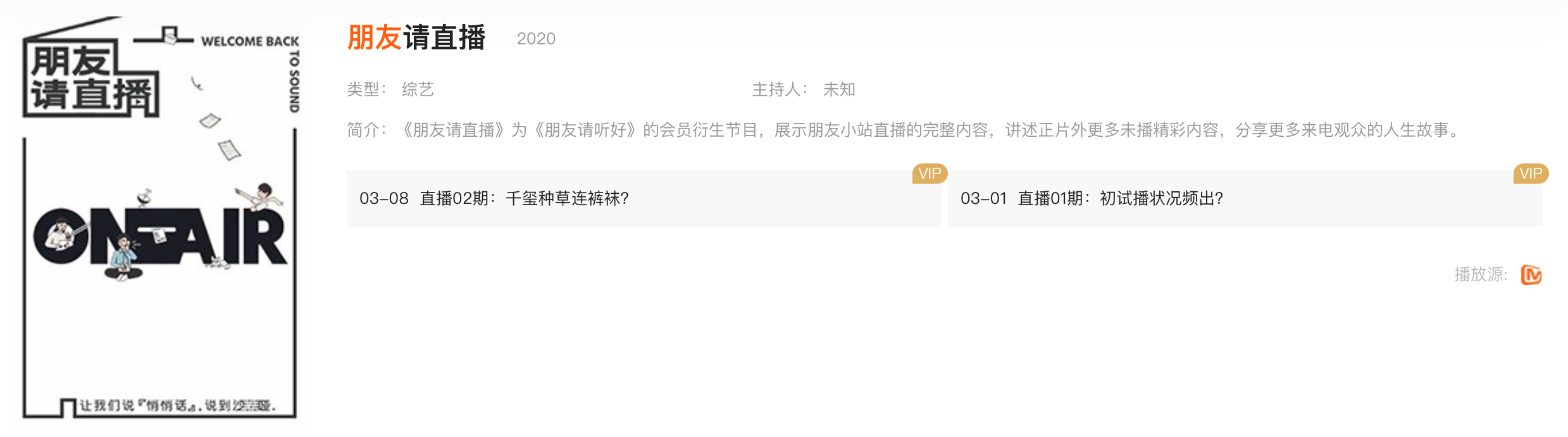 如果想看完整的广播内容,可以看《朋友请直播》,这个就是他们完整的广播节目的视频化版本。所以我们就不是个周播节目,几乎可以算是日播节目(笑),从星期一到星期天我们都是有新的内容播出的。