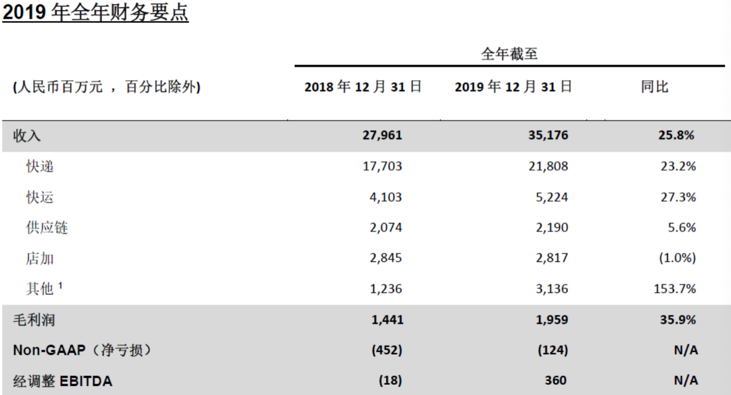 报告还显示,2019年第四季度百世集团总收入为107.7亿元,同比增长19.2%;毛利润为6.4亿元,同比增长22%;净利润为0.43亿元,较去年同期净增0.67亿元;非美国通用会计准则下(Non-GAAP)净利润为0.61亿元,较去年同期净增0.41亿元。经调整EBITDA(税息折旧及摊销前利润)为1.8亿元,同比增长17.9%。