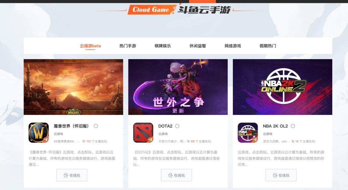 近日,斗鱼在云游戏方面频频出手。目前除了早先的云手游之外,还上线了部分云端游的beat版本。据斗鱼官方透露的信息显示,其已在云端部署了颇受用户喜爱的近20款端游和30多款手游。