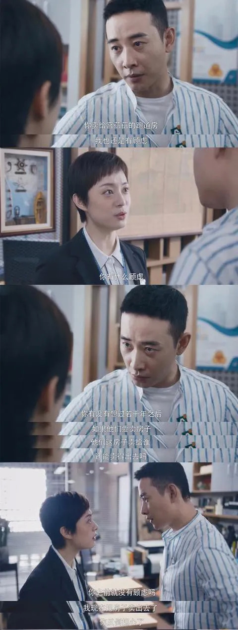 在房似锦成功出售的跑道房中,最终打动宫蓓蓓(海清 饰演)是阁楼上能够仰望星空的天窗。“星空天窗梗”也曾在《卖房子的女人》出现,三轩家的客户对象是天气预报从业者。在医生和气象工作者之间,仰望星空才是后者的“硬刚需”。因此,也有不少网友认为宫蓓蓓被几句鸡汤打动而选择购买房子过于悬浮。