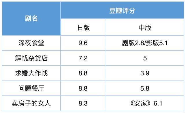 其实,近年来内地翻拍日剧爆雷不断,相较于原版《卖房子的女人》豆瓣评分8.3,《安家》豆瓣评分仅有6.1分。