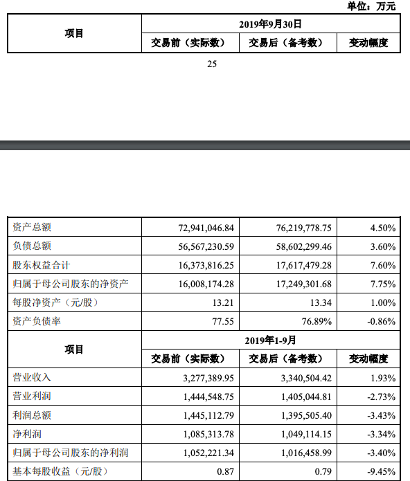 而在并表广州证券后,中信证券各项经营指标也将发生改变。截至2019年9月30日,中信证券资产总额由7294.10亿元增至7621.98亿元,营业收入从324.74亿元增至334.05亿元。但鉴于广州证券2019年的亏损情况,并表后当期中信证券净利润减少了3.34%至104.91亿元。