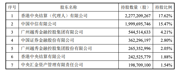 此次股份发行后中信证券前十大股东