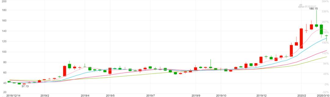 稍近一些,2019年12月到2020年2月25日北方华创股价从90元左右涨到180元。和两件大事密切相关。