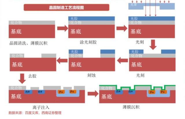 芯片是5G、AI、IOT的根基,也是“新基建”的根基。在清洗、刻胶、光刻、刻蚀、去胶、离子注入、薄膜沉积等晶圆制造的每一个流程中,都离不开相关半导体设备的参与,所以半导体设备是芯片制造的基石。
