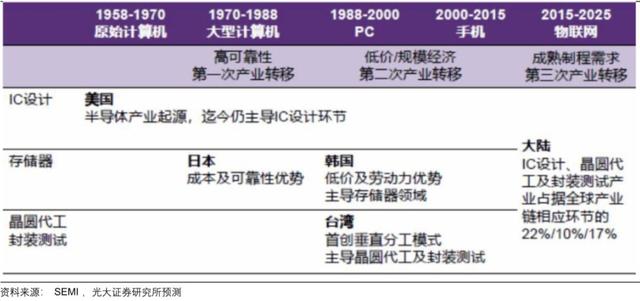 首先,中国大陆IC设计、晶圆代工及封装测试产业在全球产业链相应环节中的占比在不断提高。