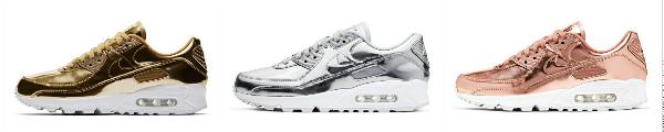 此外,Air Max 90 Metallic Pack以光芒璀璨的金属质感回归,且专为女性特别打造,并提供婴童尺寸,将于发售金色、玫瑰金色和银色三种配色。