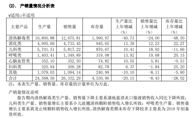 济川药业称,2019年公司营业收入和净利润略有下降,主要是公司清热解毒类产品(主要为蒲地蓝消炎口服液)销售收入较上年同期有所下降,雷贝拉唑钠肠溶胶囊、小儿豉翘清热颗粒、蛋白琥珀酸铁口服溶液等产品的销售收入持续增长,东科制药的营业收入持续实现快速发展。