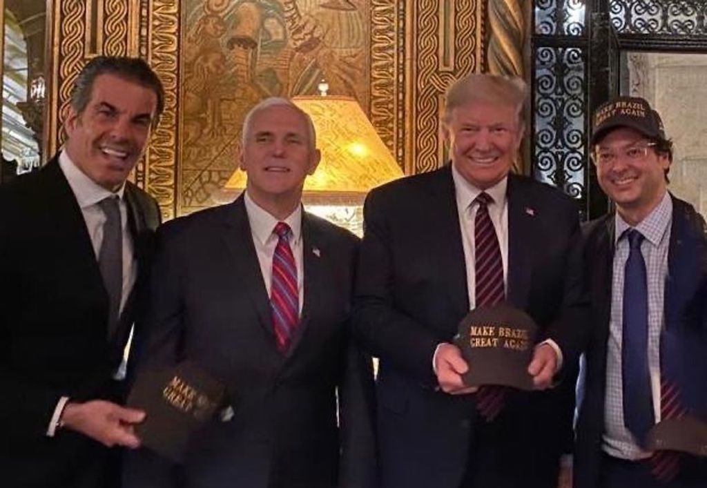 但从沃恩加藤在社交媒体上传的合影中可以看到,他就站在特朗普的身边,同时在场的还有彭斯。在另一个现场视频中,博索纳罗、特朗普和其他代表团成员聚在一起交流,而沃恩加藤就站在特朗普身后。