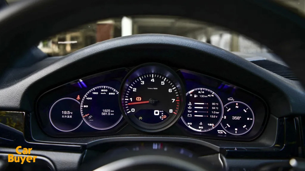 透过方向盘,可以看到经典的五连表设计几经进化,除了保留设计精髓之外,只剩下中间转速表为机械式了,其它四个小圆圈则变成了科技感更强的液晶显示屏,这一全新设计也在创新的同时很好的保留了保时捷的传统。