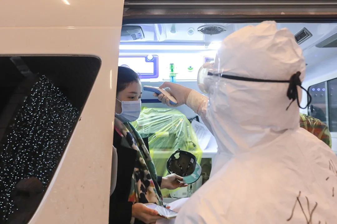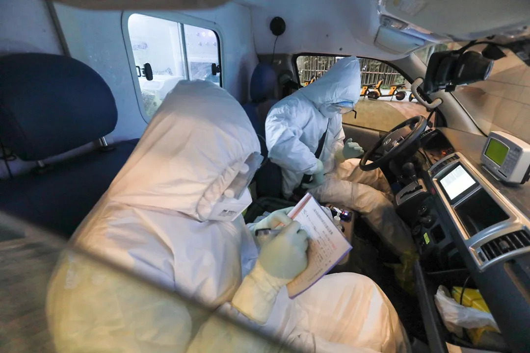 13日下午5点40分,120开进了酒店门口的围廊。工作人员已经在门口守候。乘客下车前,需要进行测温,然后再下车进行全方位的消毒,最后走过廊道进入酒店。“你好,请先准备好证件,再到工作台做个登记……”另一位工作人员在门口维持着秩序。