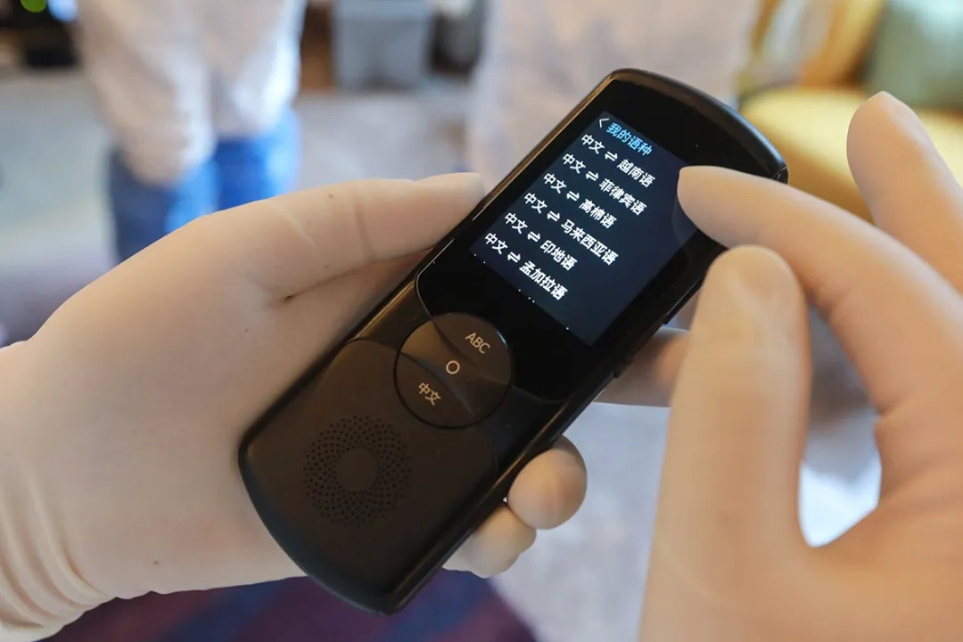 隔离点里,住了39名外籍人士,很大一部分不会说中文。与外籍人士沟通的“重任”,交给了潘红芬。“其实我也只会一些简单的对话,很多时候还需要比划。”潘红芬笑着说。隔离点配备了两台科大讯飞翻译机,如果碰上交流难题,还可以使用专业设备来辅助。