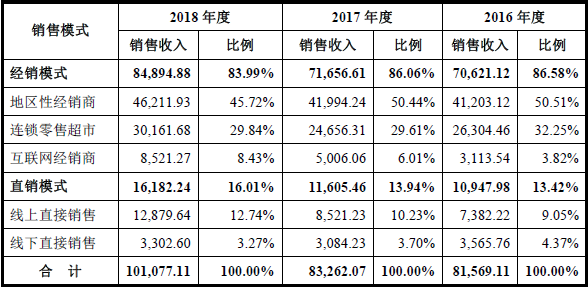 彩虹电器不同销售模式占比,数据来源:招股说明书