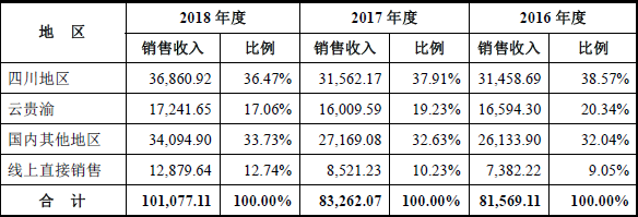 季节和地域差异限制了电热毯的消费空间和时间,招股书数据显示,彩虹电器的收入主要集中于冬季且分布在西南地区。四川和云贵渝地区销售收入累计占比超过53%。一旦取暖方式发生变革(空调、暖气),则彩虹电器业绩将严重受损。