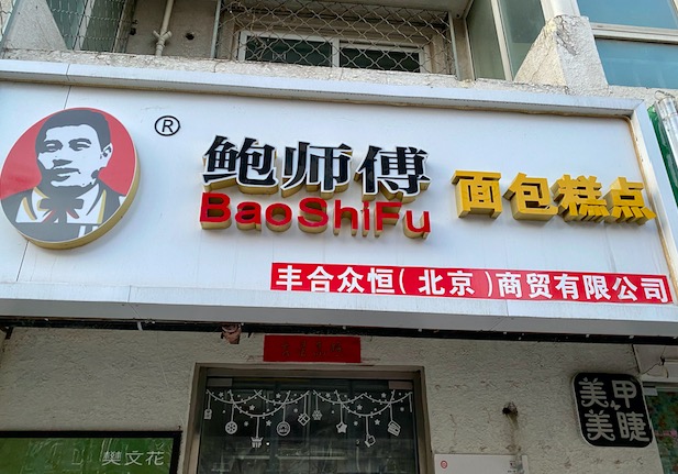 3月13日,界面新闻在北京西四环附近走访中看到,一家山寨鲍师傅门店使用了已被裁定侵权的鲍师傅头像,该店所属的丰合众恒(北京)商贸有限公司电话无人接听。