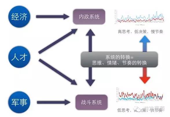 蓝线为思考水平,红线为决策水平。