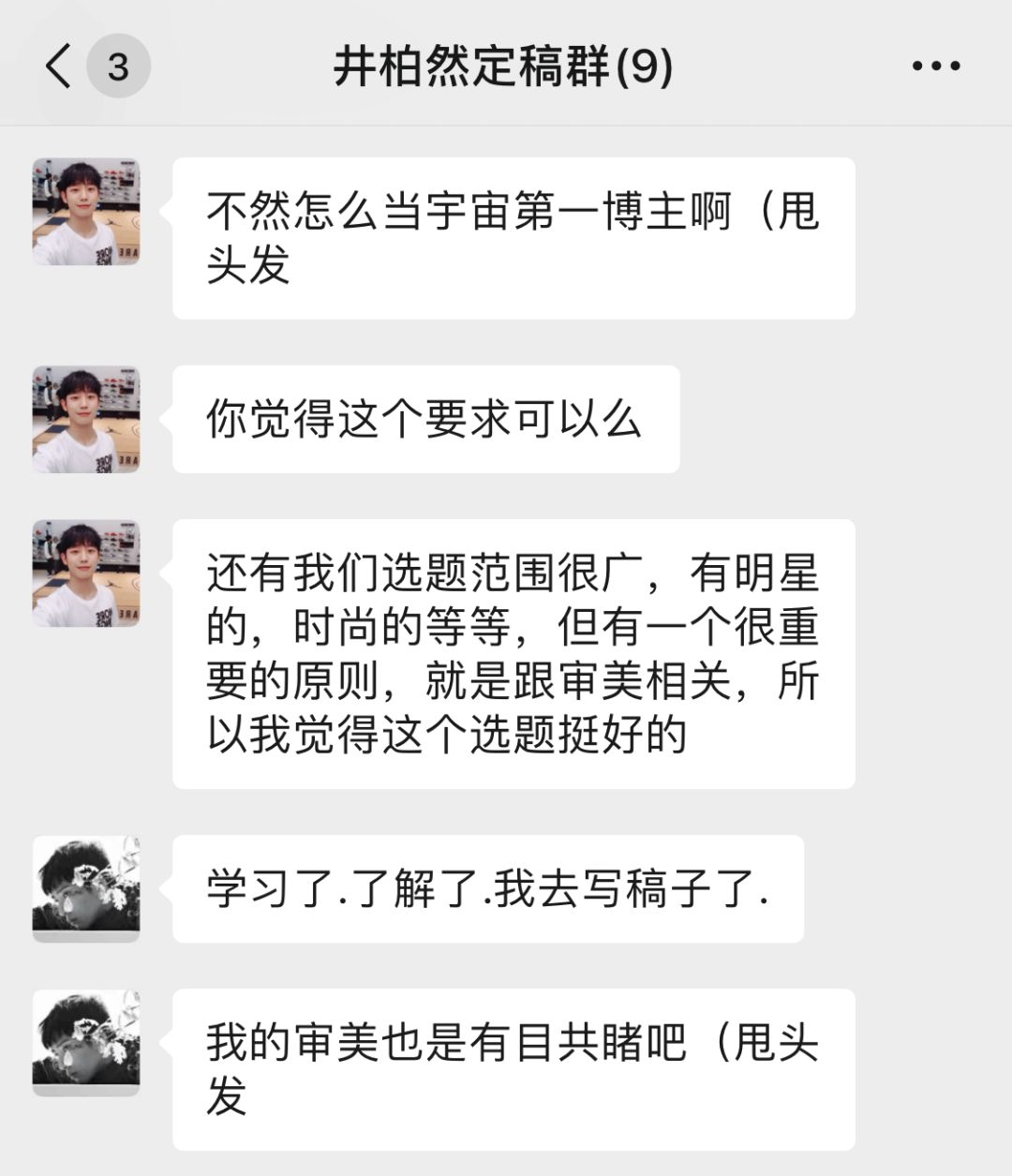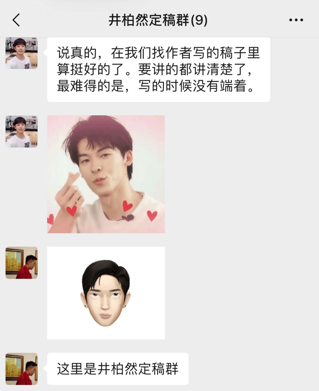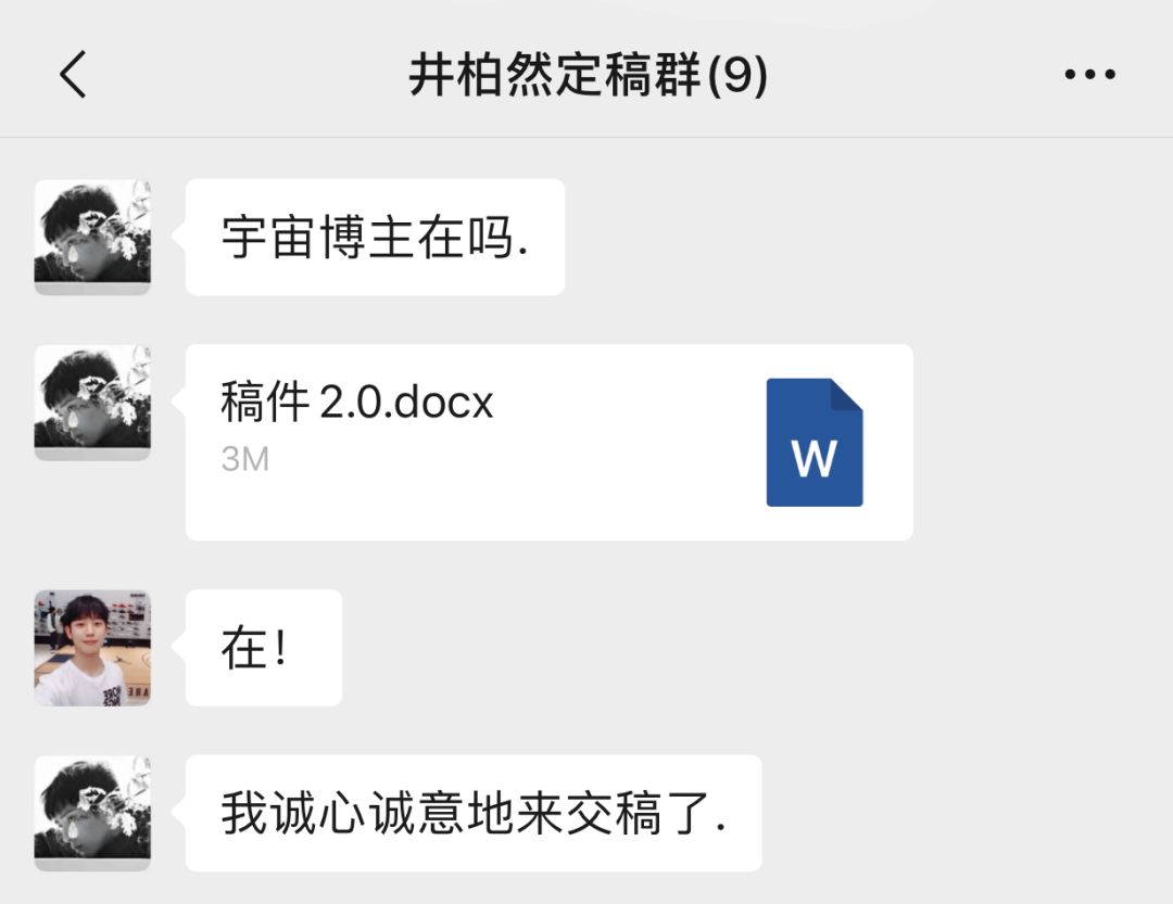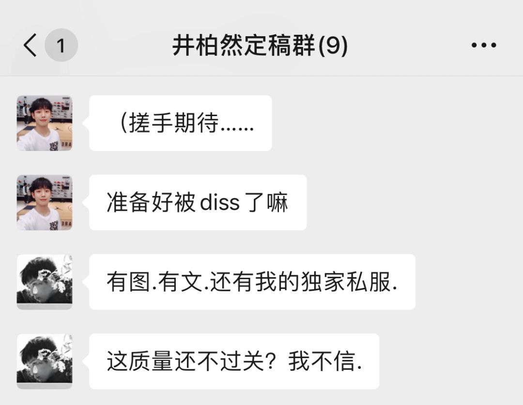 但有一天,我的微信里突然跳出来一个新的群——井柏然定稿群。