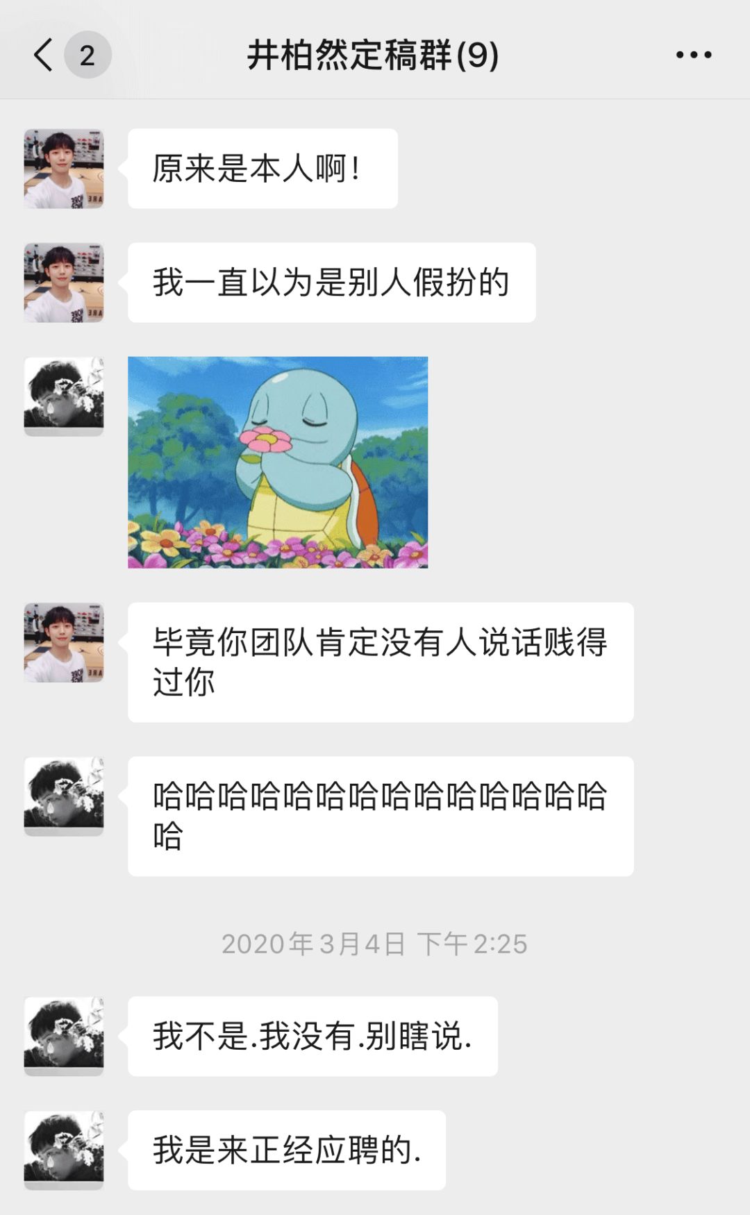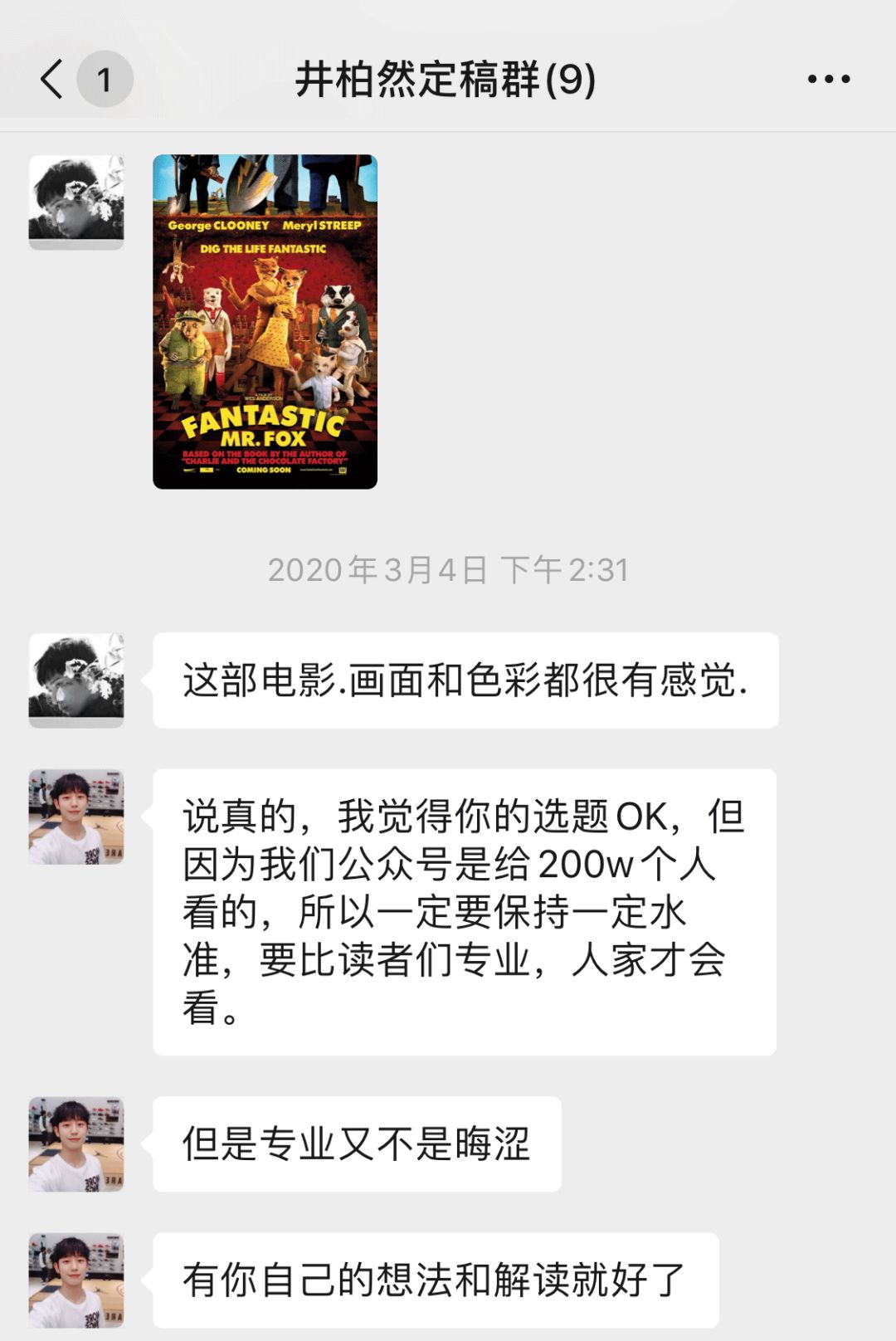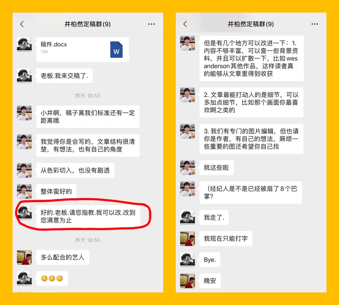 但有一天,我的微信里突然跳出来一个新的群——井柏然定稿群。