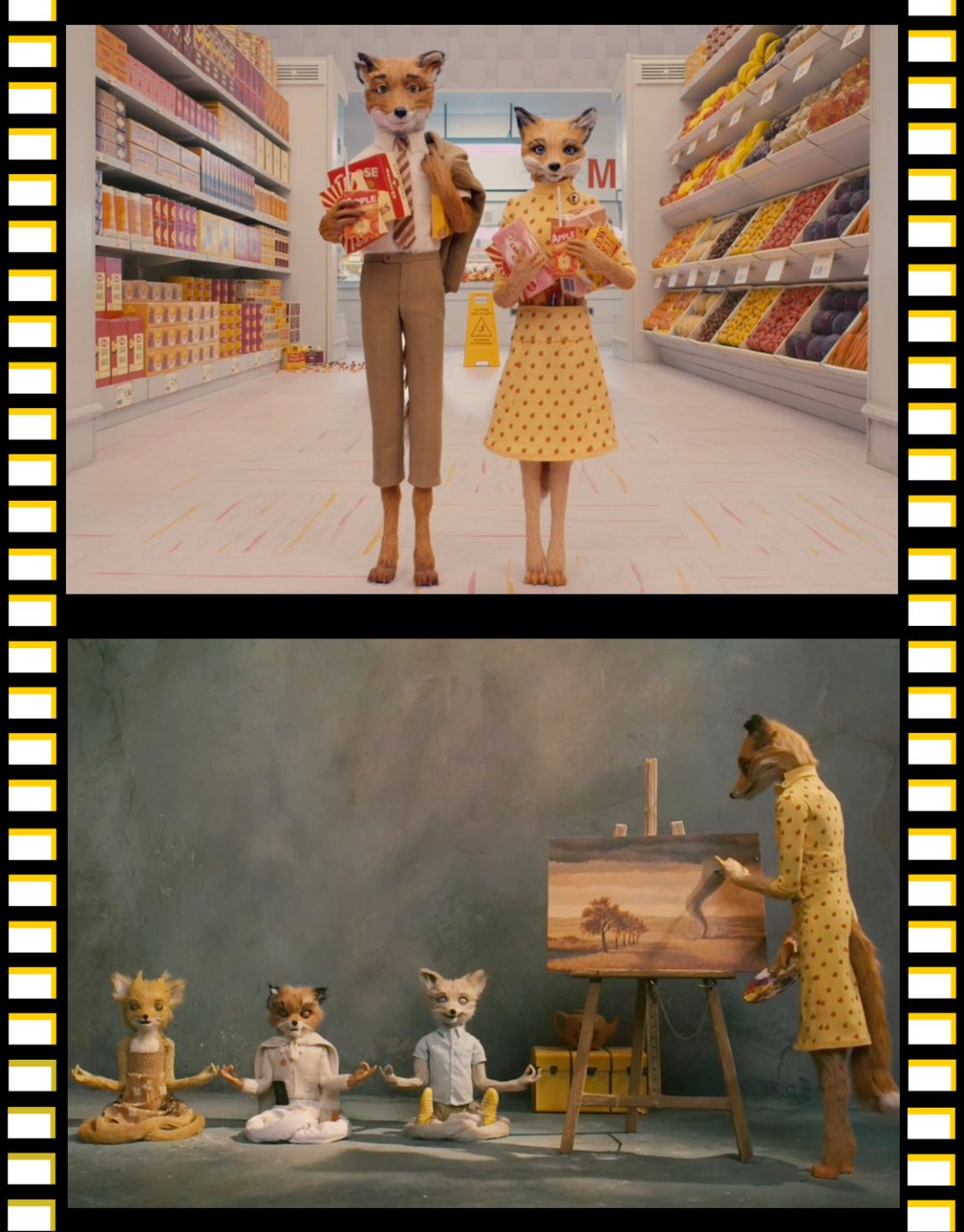 《了不起的狐狸爸爸》这部电影里,一样是他标签式的颜色碰撞以及强迫症般的对称画面,看起来真的令人身心愉悦。