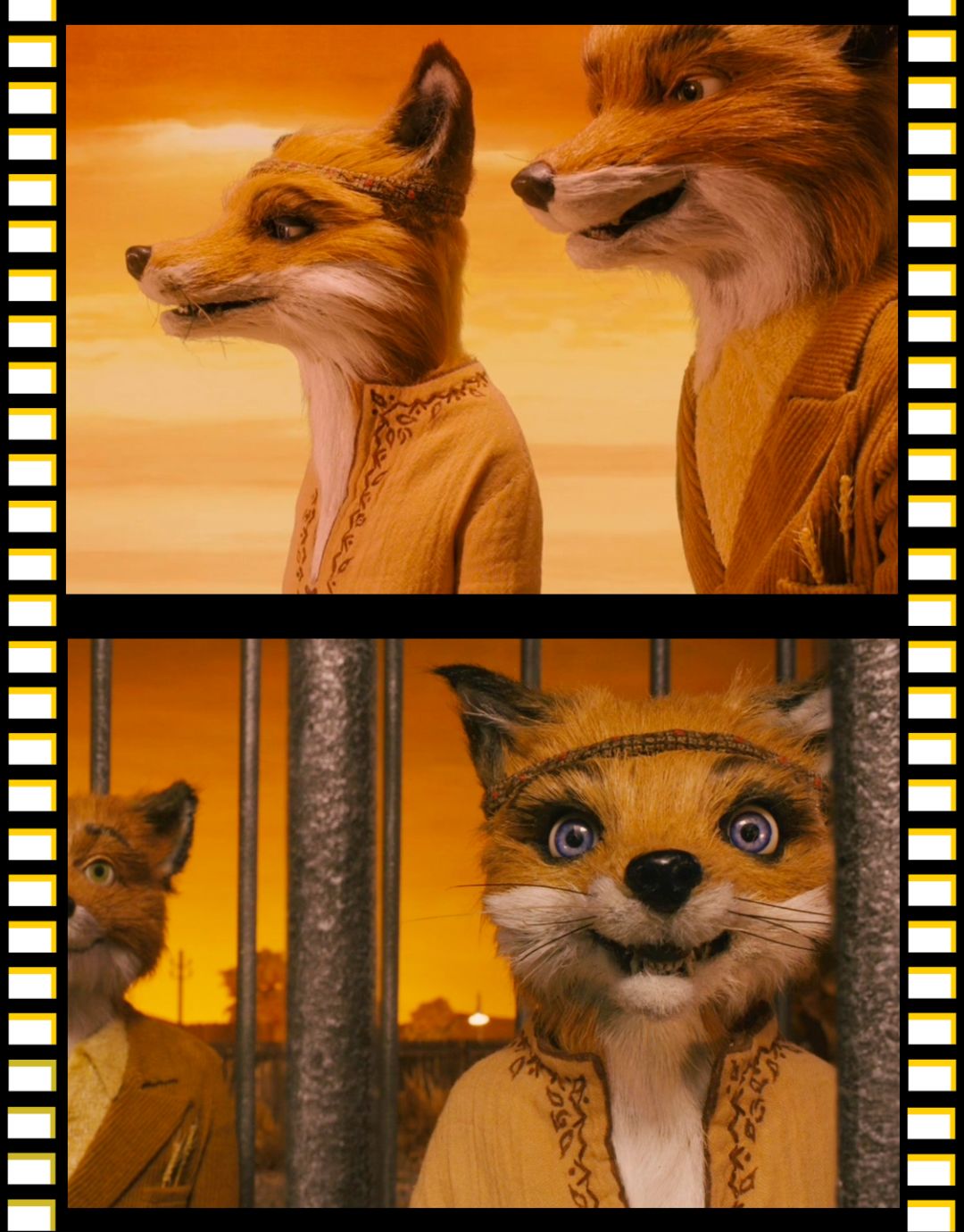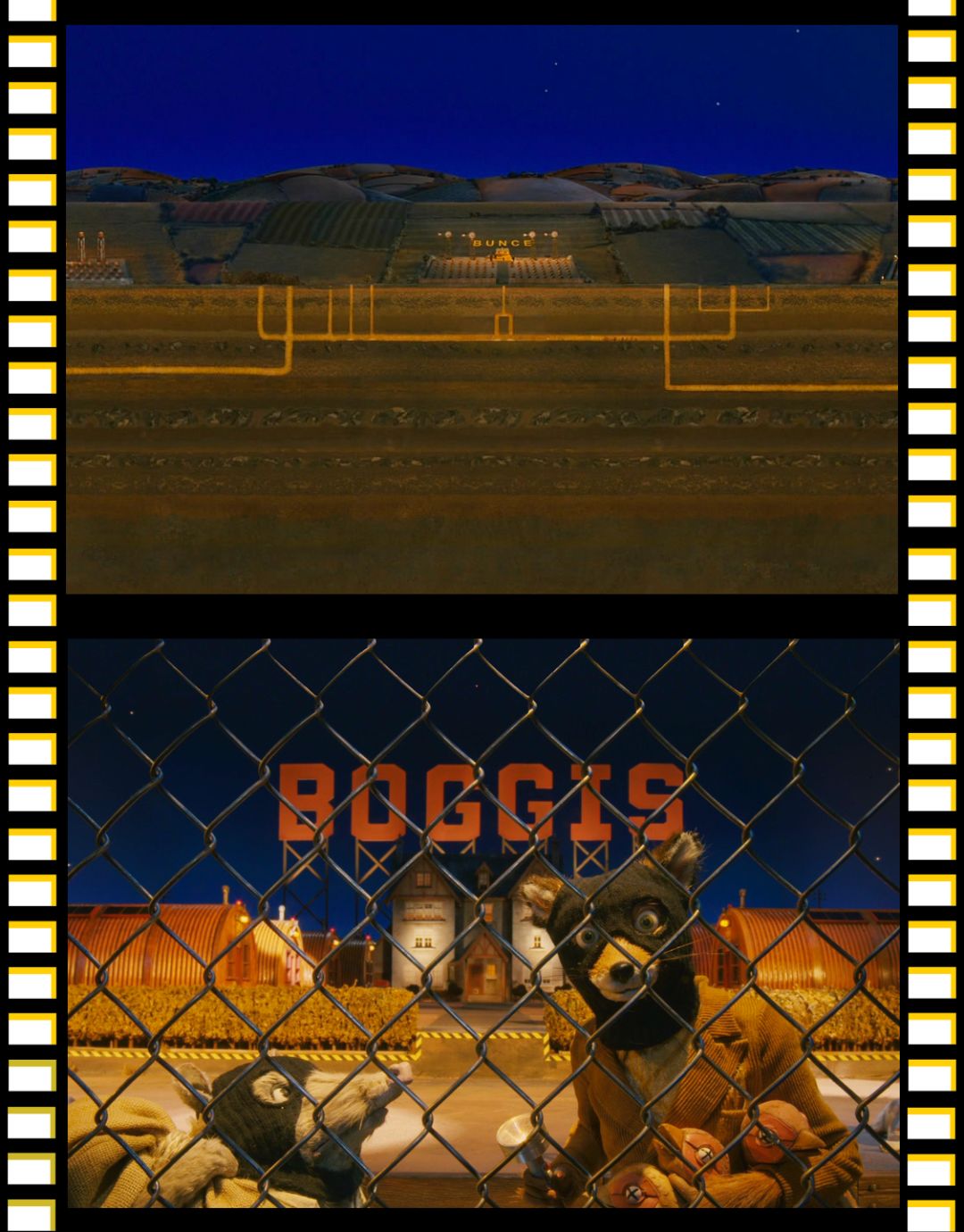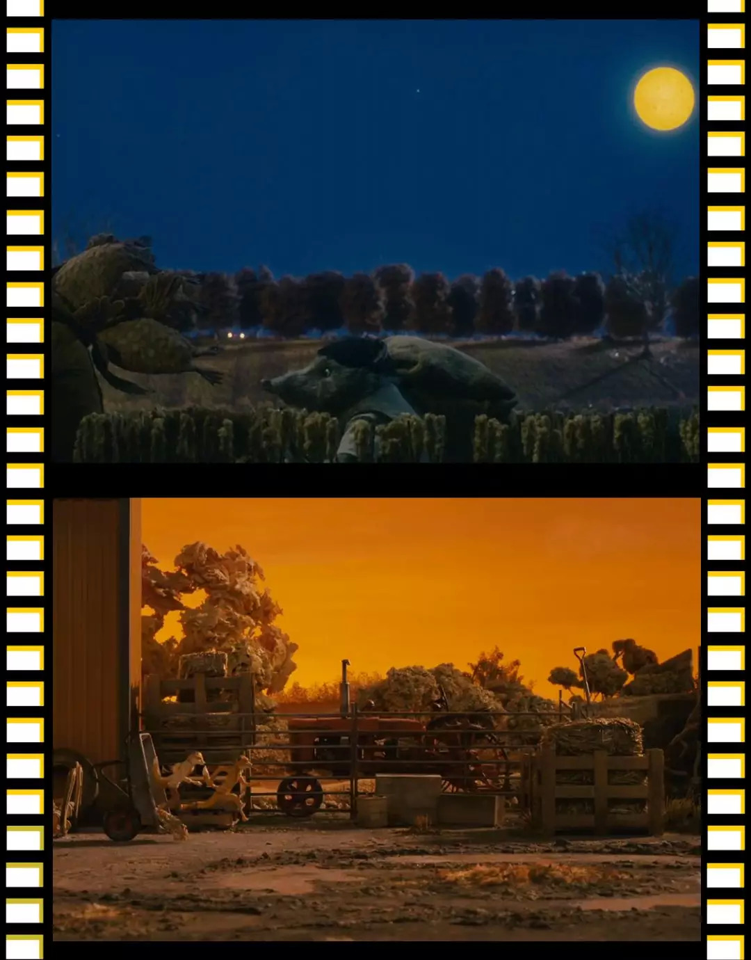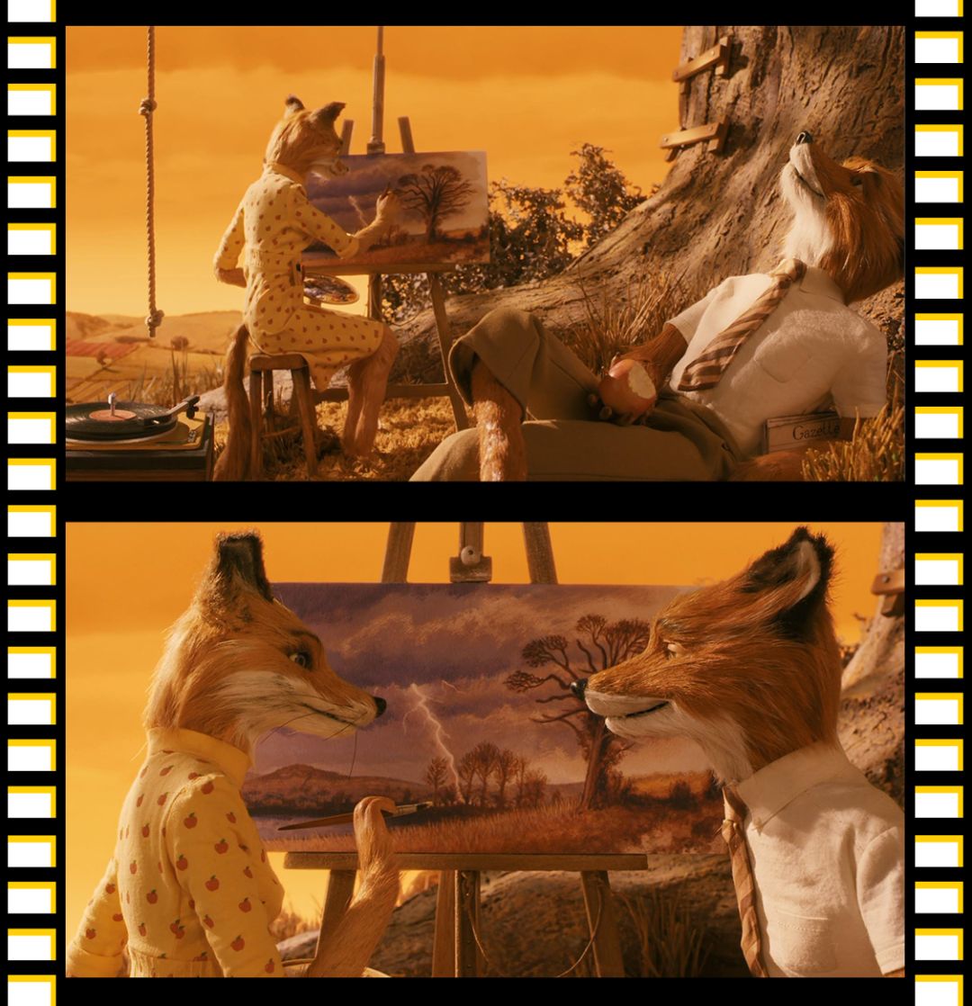 电影里,还有令我印象深刻的色彩就是藏蓝色的夜空和狐狸爸爸棕黄色的皮毛。当它们交替出现的时候,一瞬间让我觉得,原来这两种颜色放在一起可以这么好看。