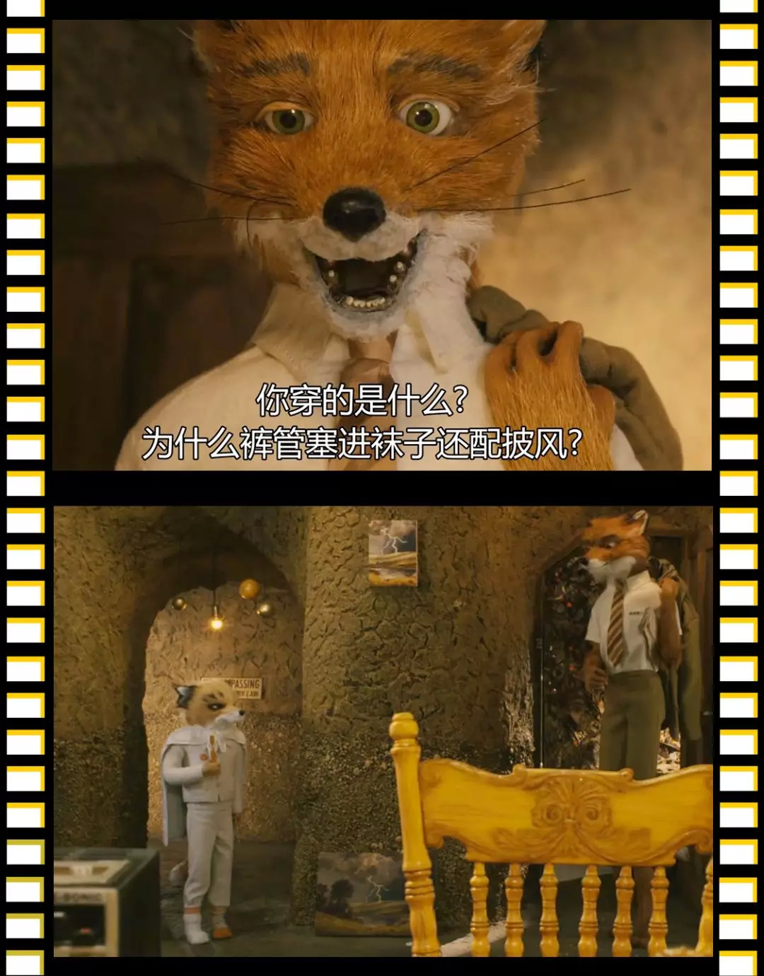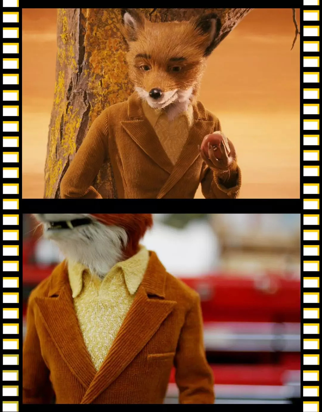 他们说,狐狸爸爸衣橱里的衣服就和导演韦斯·安德森衣橱里的一模一样。为了鲜活生动,他是用自己很喜欢的灯芯绒西装面料给狐狸爸爸设计了这套衣服。