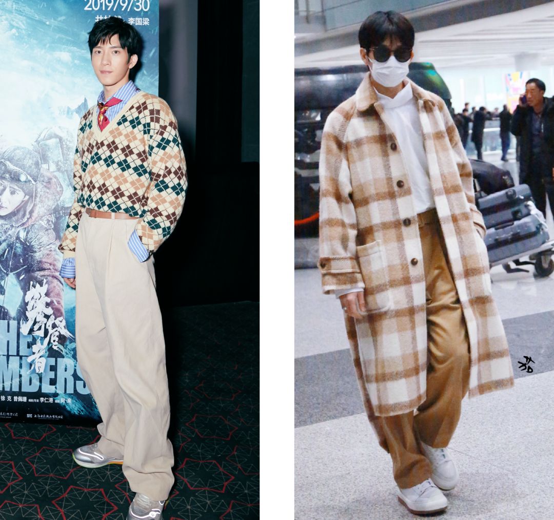 总是能看到他穿各种灯芯绒、丝绒这样复古材质的西装。也热爱颜色复古的格子衬衫。不是和西装同色系的穿,就是会突如其来的跳跃一下。