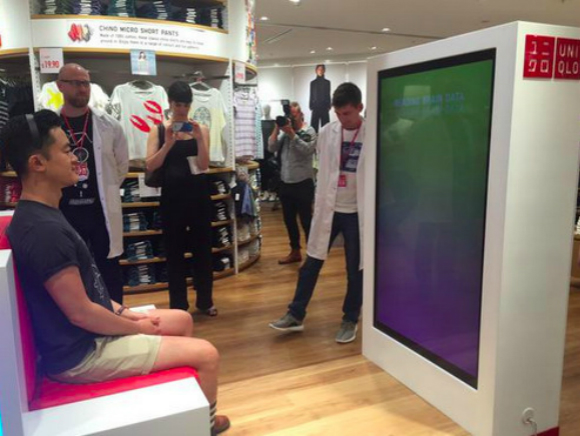 这套设备结合了日本电通广告公司 ScienceJam部门的脑电波传感技术和硅谷NeuroSky公司生产的传感器,优衣库为此还专门邀请了神经学教授来解释这个技术。