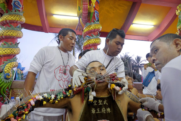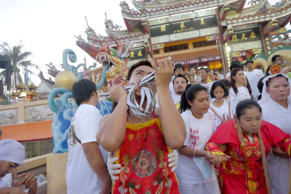 当然,素食节并不止在普吉岛举行,在泰国其他地方、马来西亚、新加坡和缅甸等东南亚国家也经常能看到素食节的祭奠活动。只不过这个节日在游览胜地普吉岛更为盛大。
