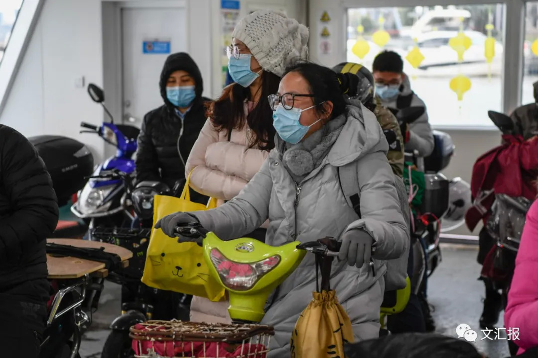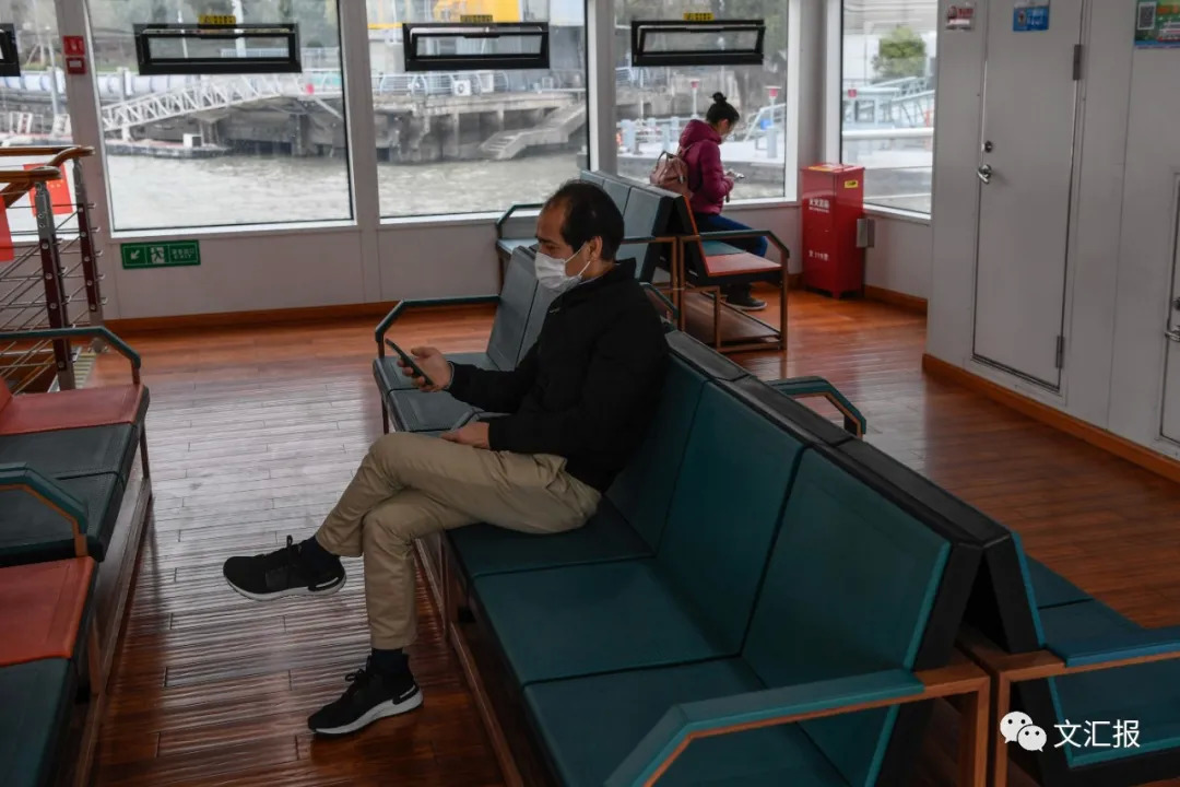 记者在现场看到,驾驶电瓶车的乘客聚集在轮船一层,二层座位上基本空着,少量乘客站在甲板上。为了保障乘客安全,疫情期间轮渡采用限流措施,原本能够容纳300人的空间,只允许80人登船。此外,上海轮渡也随之增加了船舱消毒次数,由原来的2次增加到4次。