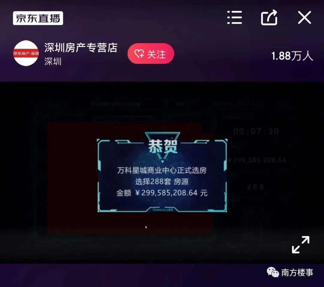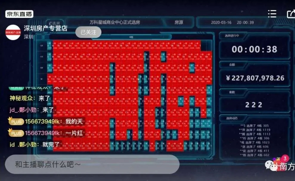 昨晚(3月16日)19:30,万科星城在E平台线上选房,并在多个直播平台直播选房情况。