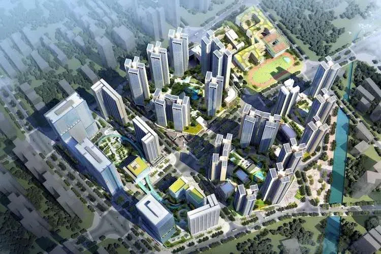 项目位于宝安区新桥街道,占地面积12.2万平方米,总建面90万平方米,含14.4万平方米商业配套、48班九年制学校和18班幼儿园。