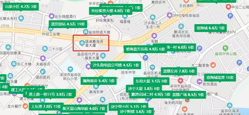 盛迪嘉海湾里大厦位于沙头角深盐路和官上路交汇处,土地面积5914.1平方米,总建面约4.4万平方米。