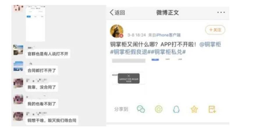 随后,铜掌柜在官方QQ群中给出了已开始兑付的消息。然而,在公司法人自首前,3月8日,有用户反映称铜掌柜app已经打不开了。