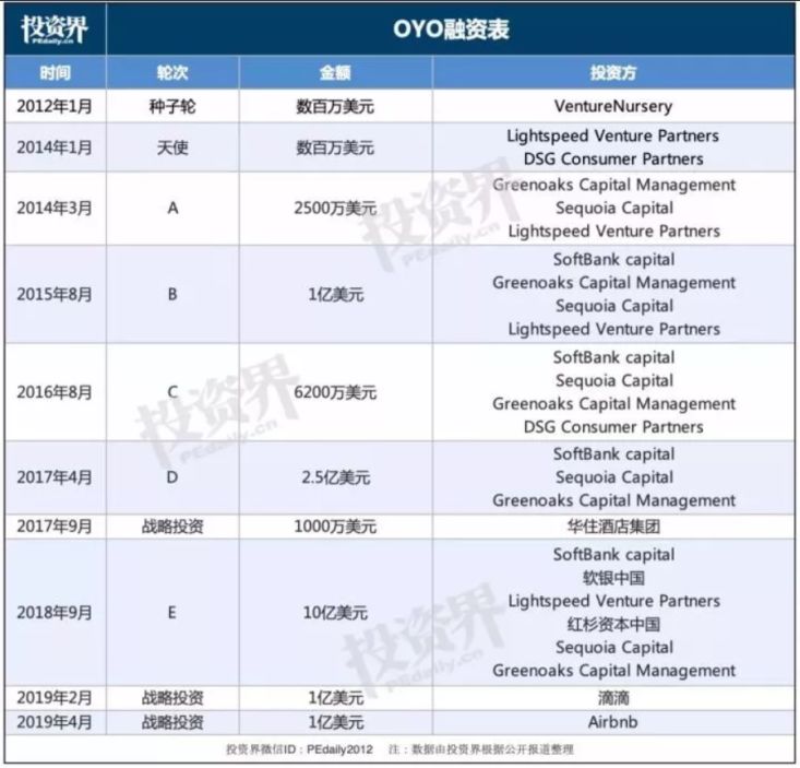 从最初的种子轮、天使轮,到E轮,包括战略投资在内,OYO拿到的钱总计超过20亿美元,参与融资的都是全球顶级资本势力,如红杉、光速、绿橡,日本软银孙正义又对李泰熙非常看好。
