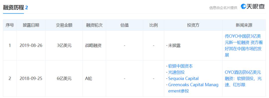天眼查数据显示,其中OYO中国独立融资就有9亿美元。