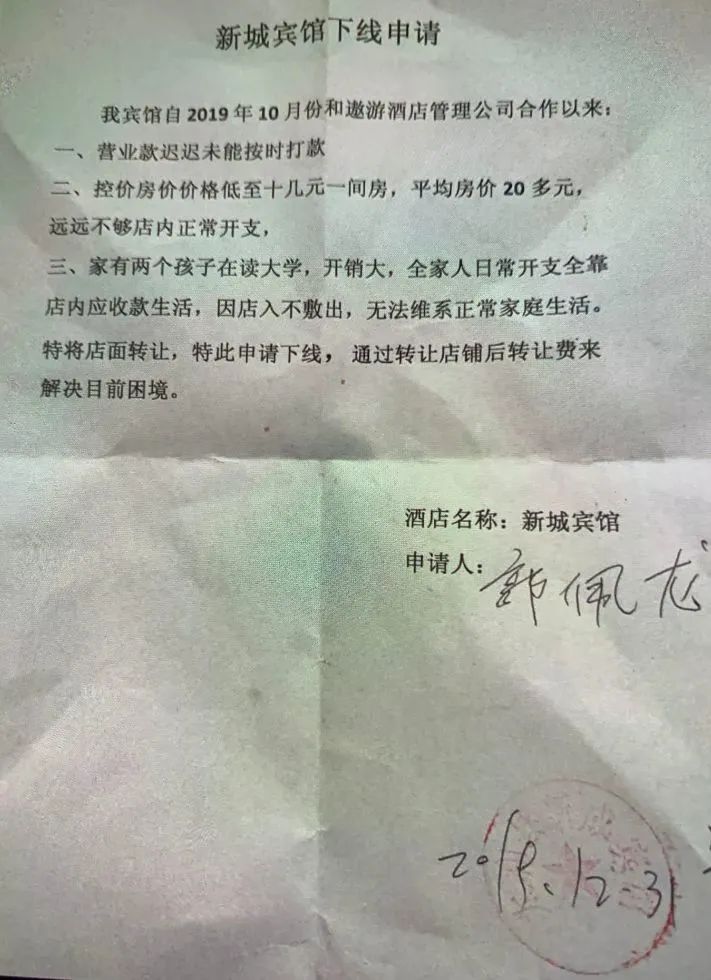比如一位业主称OYO方面擅自更改保底额,让酒店容易完成,然后超出的部分继续按照原来的标准进行五五分成,算下来,酒店赚不到钱,还要倒贴钱给OYO,原来承诺过的客房补贴以及来自于携程、艺龙、去哪儿、飞猪网等旅游网站的补助都没有了,店长的五险一金也都取消了。
