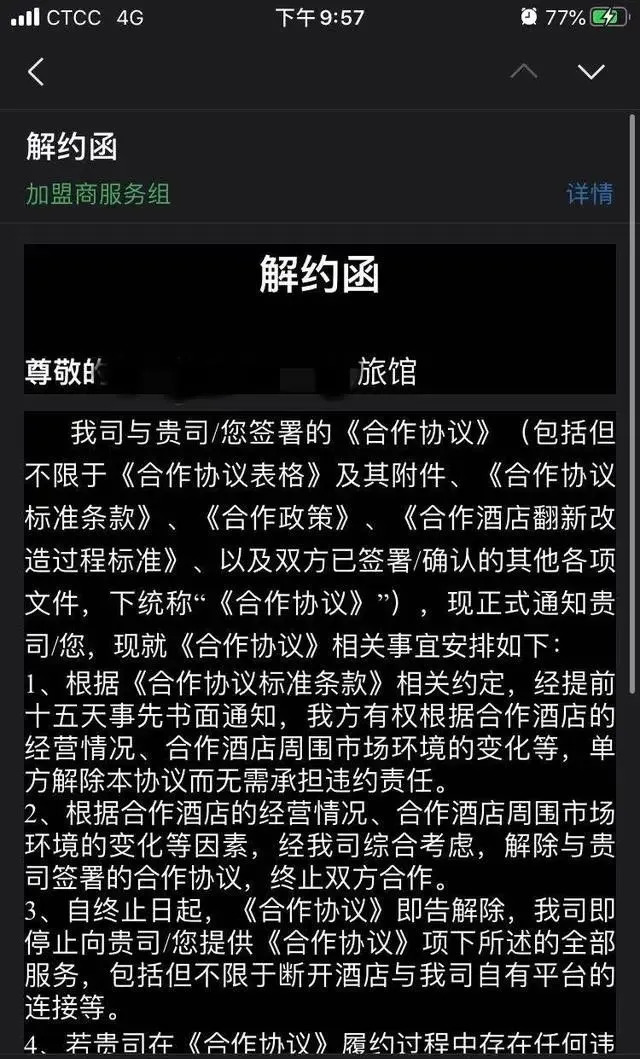 最终的结果就是,OYO与酒店业主间的矛盾激化,越来越多的加盟酒店对OYO失去信心,选择终止加盟合作。