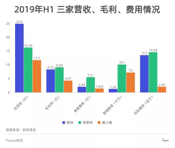 从营销增速、归属净利润可以很直观的看出,截至2019年上半年,绝味快速增长,周黑鸭持续下滑,煌上煌稳步增长。