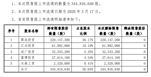 公告显示,3月17日绝味食品将有3.45亿股首发限售股解禁上市,占公司总股本的56.65%,是解禁前流通盘的1.3倍。