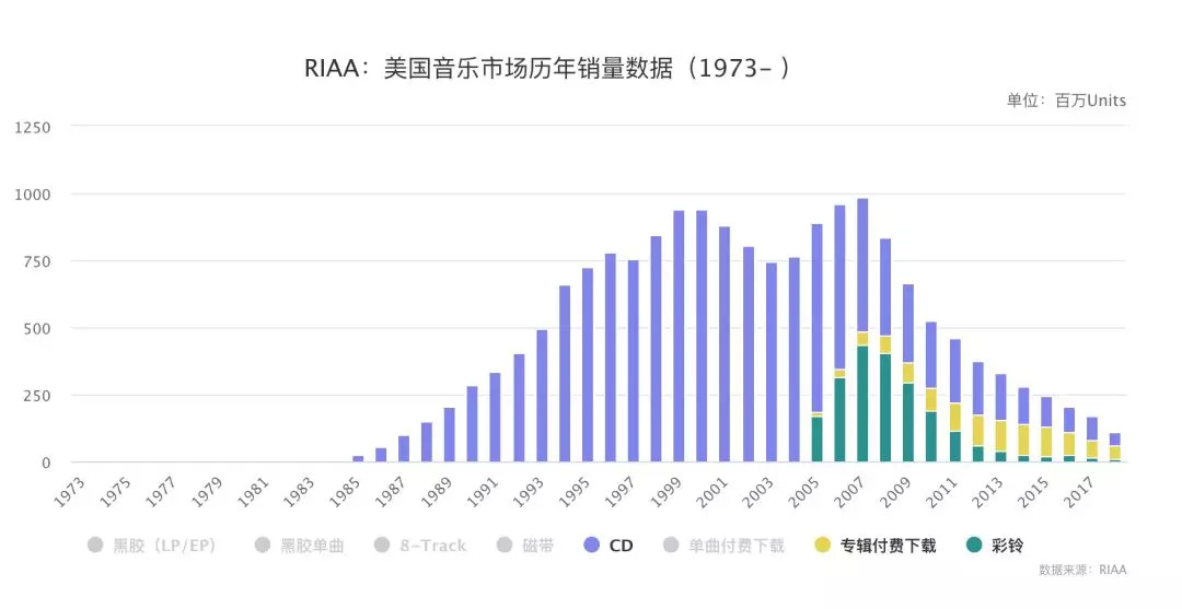 众所周知,21世纪开始,在互联网的冲击下,实体唱片销量不断滑坡,导致音乐产业收入的下滑。而在音频彩铃市场最活跃的2005-2009年,彩铃收入弥补了音乐产业收入的部分缺口,在培养了早期用户付费消费习惯的同时,也对维护音乐版权内容和提升版权意识起到了不可忽视的作用。据美国唱片协会RIAA发布的数据,2006-2009年,美国音乐市场的彩铃收入超过或与付费下载持平,彩铃销量跟CD不相上下。