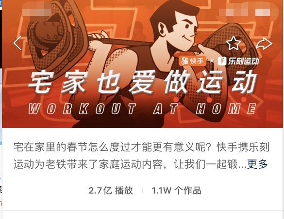线下品牌乐刻,则与快手联合推出“宅家也爱做运动”活动,目前该活动已累积2.7亿播放量及1.1万个作品。乐刻运动在快手开通的账号,则以天为单位推出不同直播课程及运动Tips短视频。从播放情况看,大部分视频轻松过万,但近期出现数据下滑趋势。