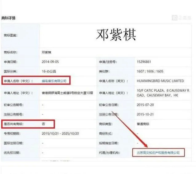 2019年,本名为邓诗颖的邓紫棋与原经纪公司蜂鸟音乐解约,但其艺名GEM、邓紫棋均被公司注册,且使用权的截止日期为2025年10月20日。