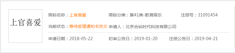 注:北京合纵时代科技有限公司为上官喜爱所在匠星娱乐的母公司