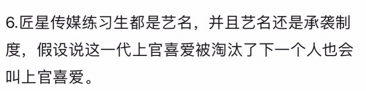 有关于上官喜爱艺名的讨论中,有这样一条,“其实就是公司要这个艺名的所有权,怕后面艺人火了之后解约或不续约”,评论是,“把‘怕’删了”。