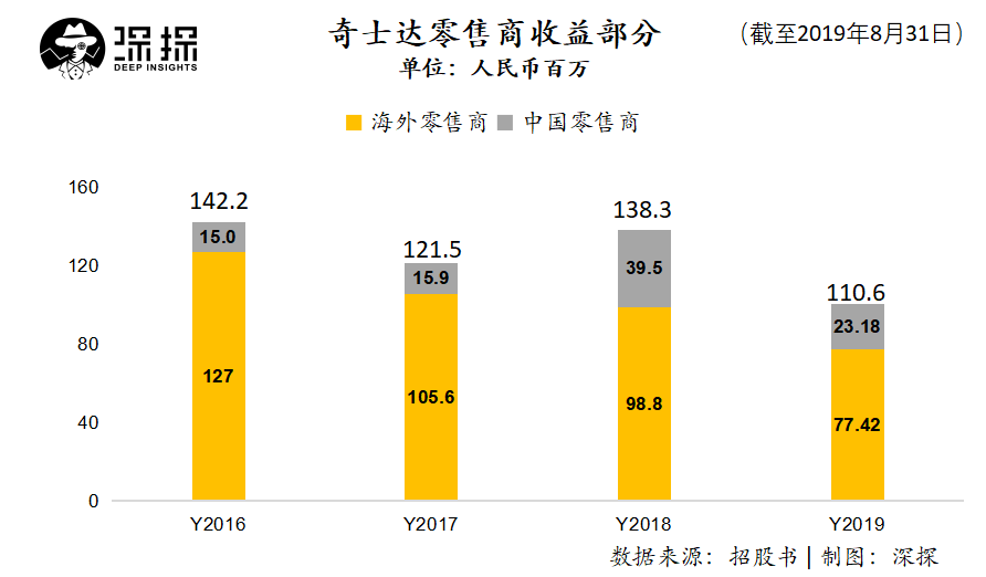 而对于奇士达来说,海外市场一直是奇士达的主要销售目的地,招股书显示,奇士达海外目的地收入在2016-2018年为74%至48%,国内收入占比则相应提高。这实际上是由于海外销售的毛利率一直比国内要高,在过去几年,奇士达的海外零售商及批发商毛利率均保持在35%及以上。