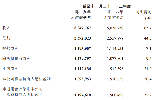 3月17日,阅文集团公布2019全年业绩。阅文2019年实现总收入83.5亿元,同比增长65.7%;毛利润为36.9亿元,同比增长44.3%;净利润为11.1亿元,同比增长21.9%。