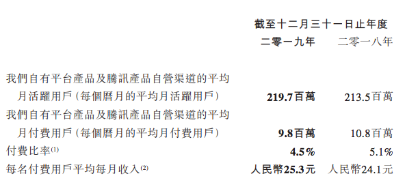 阅文2019年ARPU达到25.3元,同比增长1.2元;付费率4.5%。