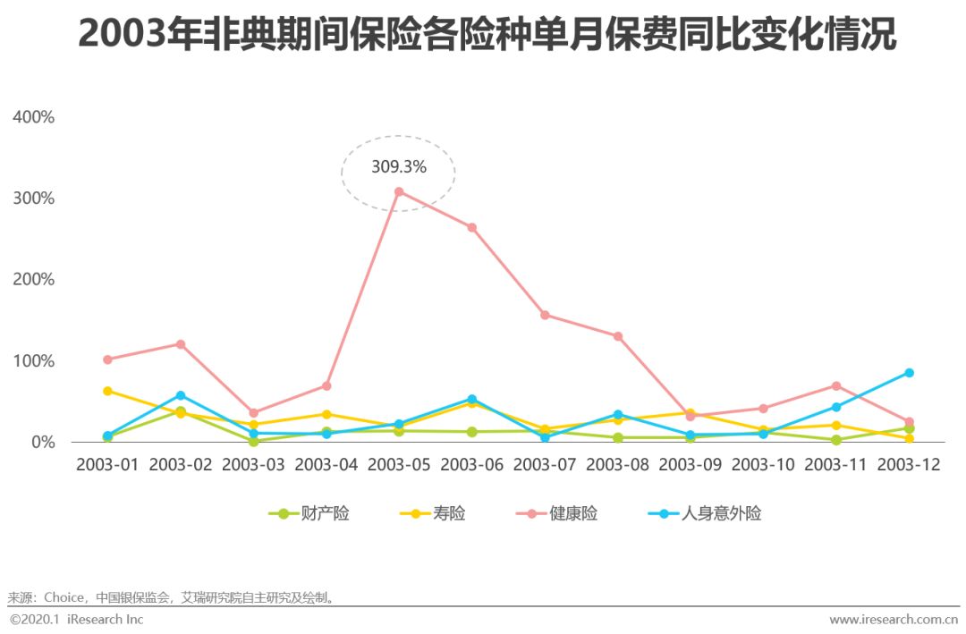 另外,值得关注的是,经历过此次“全民抗疫”时期,国民的健康保障意识会很大程度上被唤醒,从而带来健康保险需求的大幅增加。回顾2003年非典时期各险种的单月保费变化情况可以看出,在非典疫情逐渐受控的5-8月份,健康险出现了爆发式的增长态势,单月同比增速最高超过了300%。相信此次的风险教育对人们的影响是深刻而长远的,另外疫情防控期间保险企业的责任与担当正在凸显,保险行业的社会形象也会潜移默化的改变,这些都会对保险行业的发展带来积极的影响。