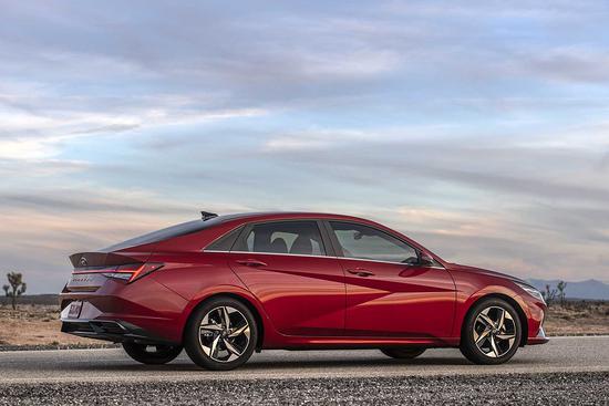 侧面,新一代伊兰特的侧面从车头到车尾的个性化线条凌厉,带来更锐利动感的视觉效果。搭配五辐运动轮毂,更贴合年轻人追求激进的心理。